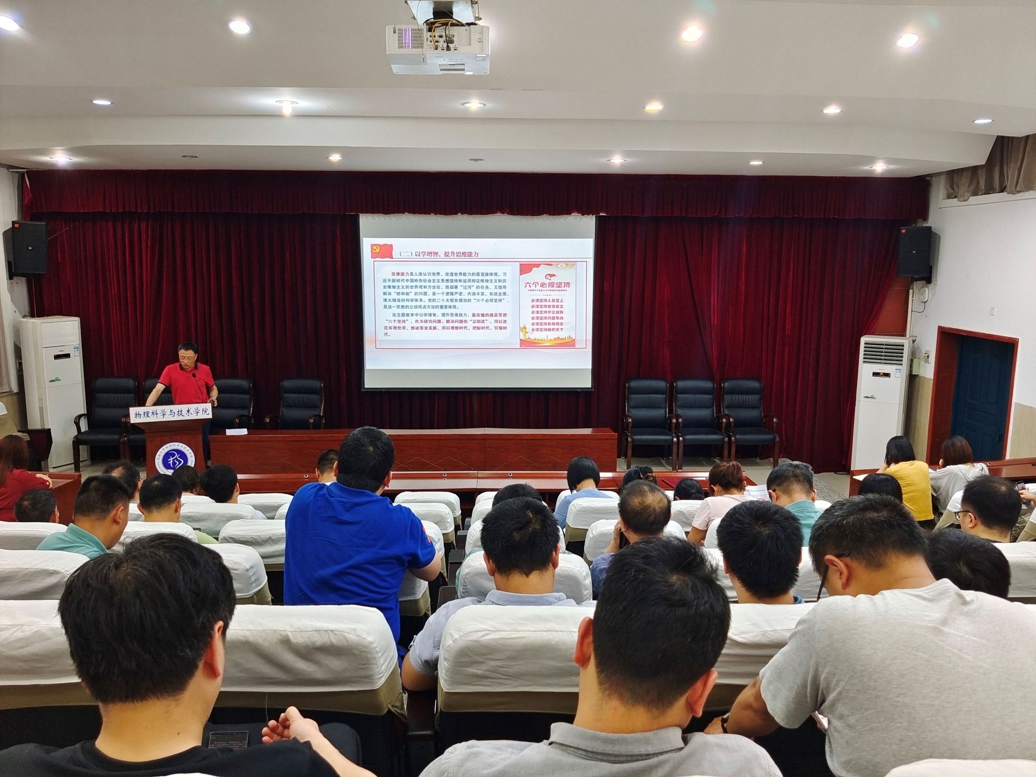 6月2日下午,哔咔漫画 在小阶梯教室举行2023年第四次教职工政治理论学习会,专题学习习近平总书记在中共中央政治局第五次集体学习上的重要讲话精神和集中观看“西大教师故事”视频等内容。学习会由哔咔漫画 党委书记李余廷主持,全体教职工参加了此次学习。