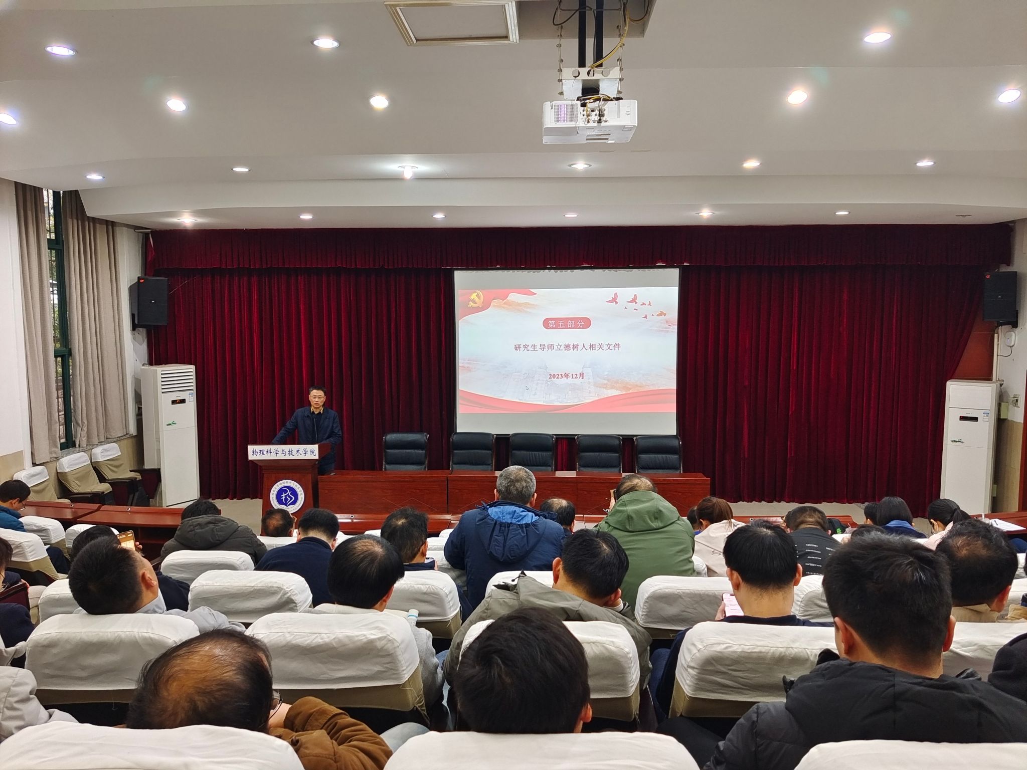 12月1日下午,哔咔漫画 在小阶梯教室举行2023年第八次教职工政治理论学习会,集中学习《中华人民共和国宪法》《中华人民共和国高等教育法》《中华人民共和国教师法》《中华人民共和国反间谍法》和研究生导师立德树人相关文件和违反《研究生导师指导行为准则》的典型案例。学习会由哔咔漫画 李余廷书记主持,全体教职工参加了此次学习。