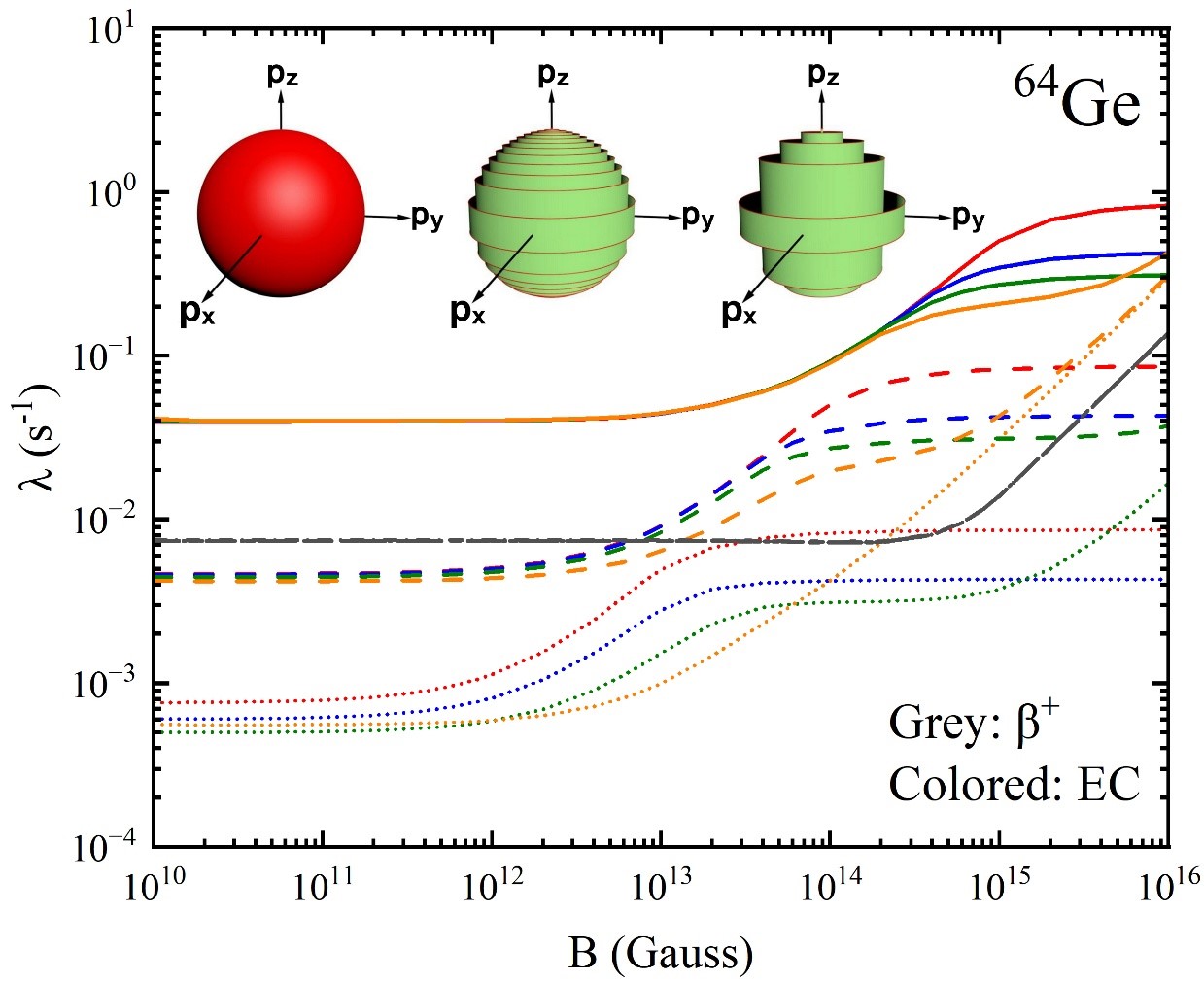 衰变率很弱(半衰期很长),因此决定了rp过程的时标、路径、丰度及相应的中微子发射率。然而,在高温、高密、强磁场的天体环境下,一方面,原子核的电子俘获过程通道被打开;另一方面,天体环境下的