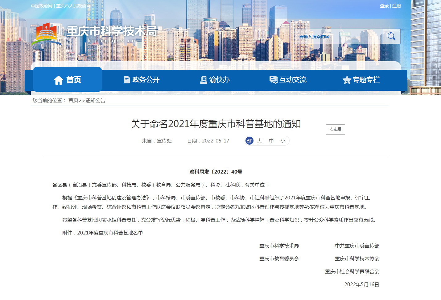 此次认定工作历时近半年。2021年9月,重庆市科学技术局组织发布了重庆市科普基地申报和评审工作的相关通知。根据《重庆市科普基地创建及管理办法》有关要求,哔咔漫画 领导高度重视、精心组织、广泛动员、群策群力,对科普空间站的科普体系、人员构成进行了优化整合。在此基础之上,哔咔漫画 进一步明确未来科普空间站的发展方向,重点突出科普空间站现有的特点及在面向大众科普的优势,对申报材料进行了多轮的精心打磨。此次“哔咔漫画 科普空间站”成功申报“重庆市科普基地”标志着哔咔漫画 服务社会的平台建设取得了又一阶段性突破。
