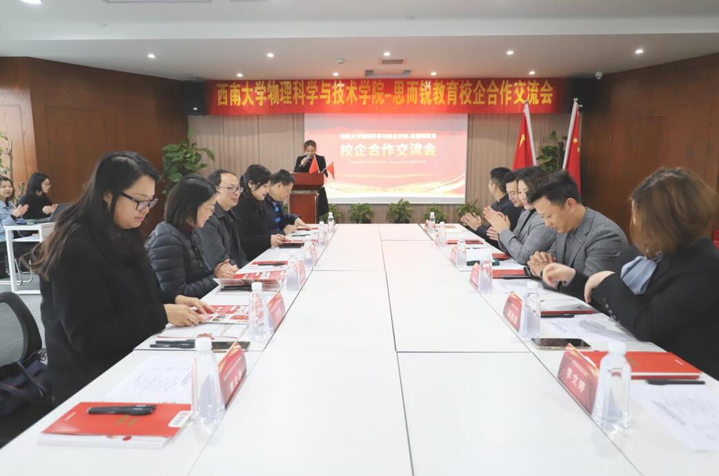 为深入推进校企合作、产教融合,进一步提升基础物理教育人才培养质量,3月10日,哔咔漫画 与思而锐教育举行了“学生创新创业实践基地”授牌仪式及合作交流座谈会。党委书记李余廷、党委副书记刘汭雪、哔咔漫画 副院长邓涛、教务办主任刘平萍、团委书记贺颖,以及思而锐教育罗春红总经理、夏丽副总经理等公司高层参加会议,会议由思而锐教育李文婷总监主持。