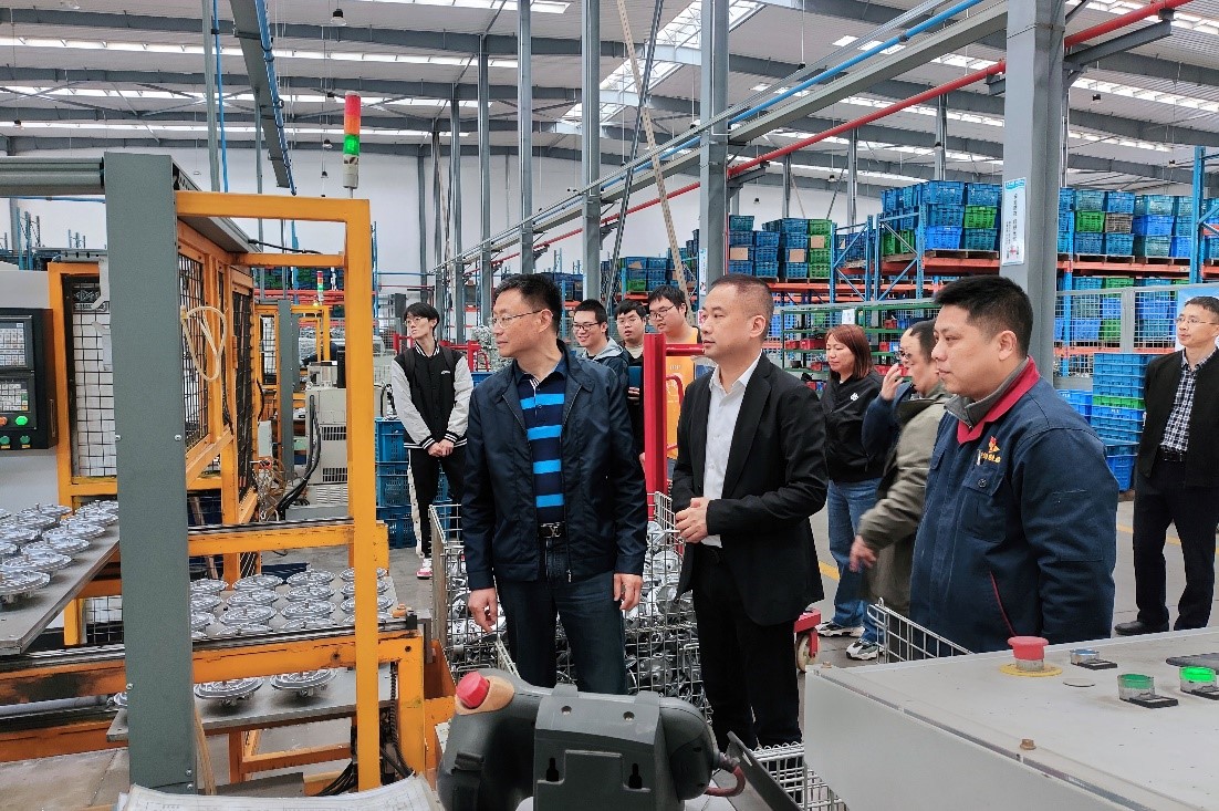 到达园区后,调研组先后走访了重庆银角制动器有限公司、重庆金茂联合科技有限公司和重庆华世丹机械制造有限公司。在公司主要负责人的陪同介绍下,哔咔漫画 师生详细了解了摩托车及电动车鼓式制动器的发展现状和生产流程,以及医疗、车载电子、民用电子等领域的电子产品制造业情况,参观了华世丹通机实验室、技术研究院。