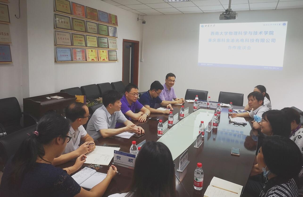 吴正茂院长首先向惠科集团对哔咔漫画 工作的支持表示感谢,介绍了哔咔漫画 的基本情况,他表示高校承担了人才培养、科学研究以及社会服务的职责,校企双方合作共建能更好的促进高校人才培养、科学研究的发展。哔咔漫画 希望在本科学生实习实训及专业硕士培养方面与惠科集团开展长期合作。同时希望哔咔漫画 各研究团队在有机发光材料、光学、半导体器件等方面与惠科集团开展合作。惠科金渝的匡玮经理也表示非常欢迎物理哔咔漫画 的老师和同学到惠科集团参观、实习,进而达成进一步的合作意向。