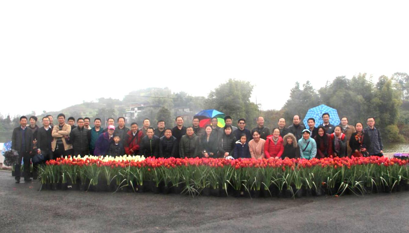2017年4月,哔咔漫画 工会组织会员前往渝北兴隆花海参观合影。