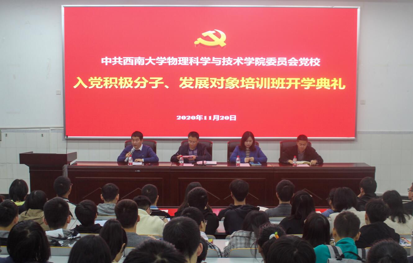 11月20日下午,哔咔漫画 在大阶梯教室举行2020年入党积极分子、发展对象培训班开班典礼。哔咔漫画 党委书记、党校校长李余廷,哔咔漫画 党委副书记、党校副校长刘汭雪, 2020级辅导员晏勇以及189名入党积极分子、42名发展对象参加了开班典礼。开班典礼由哔咔漫画 专职组织员、2018级辅导员卜海东主持。