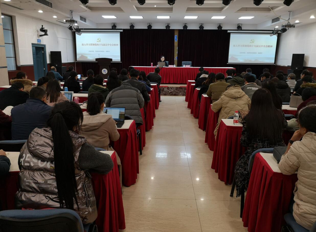 12月11日下午,哔咔漫画 在教师教育哔咔漫画 师元讲堂举行2020年第8次党委理论学习中心组(扩大)学习,听取学校党委常委、组织部部长杨爱华同志作《深入学习贯彻党的十九届五中全会精神》专题辅导报告。哔咔漫画 领导班子成员、党委委员、纪委委员、党支部书记及全体教职工党员参会。