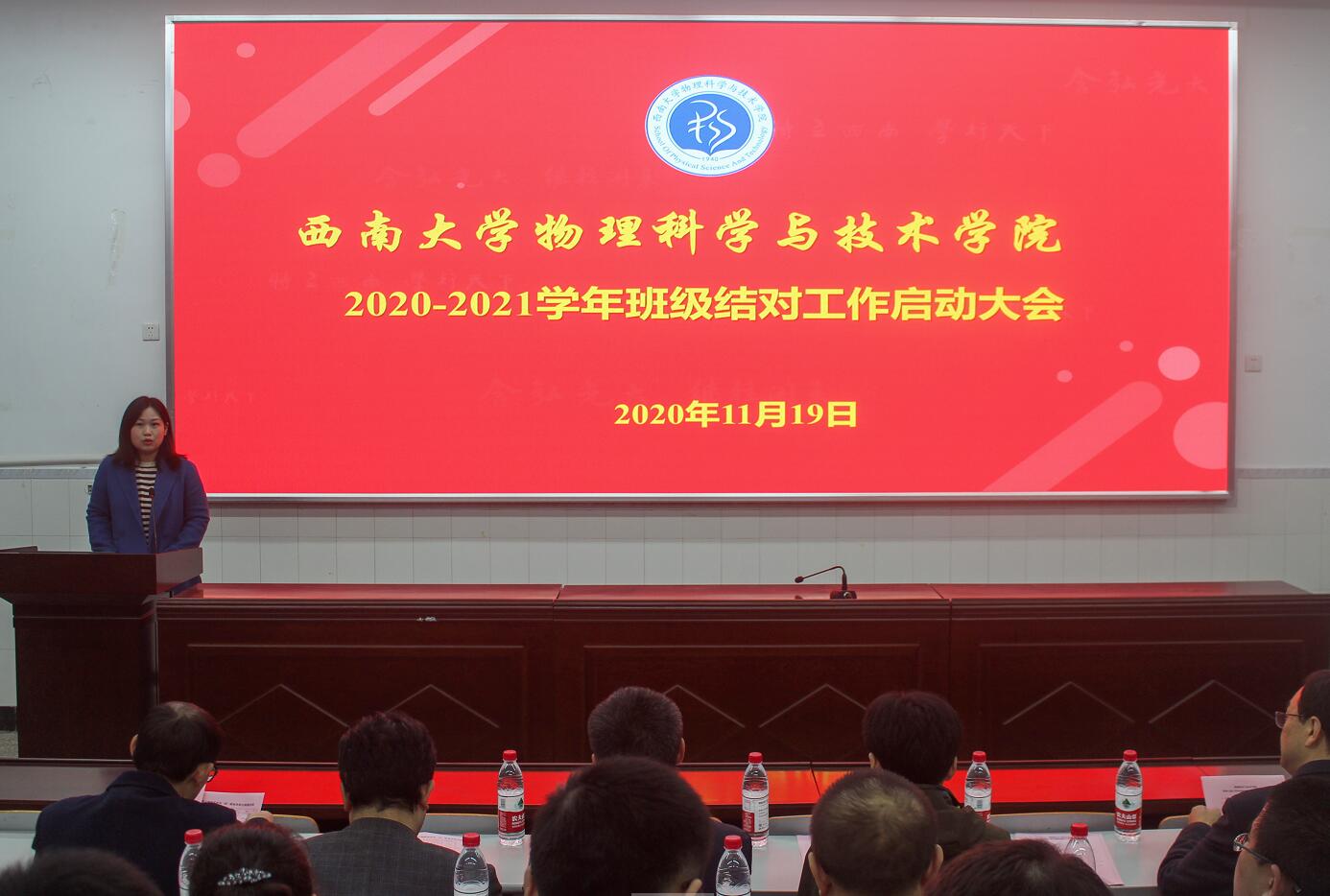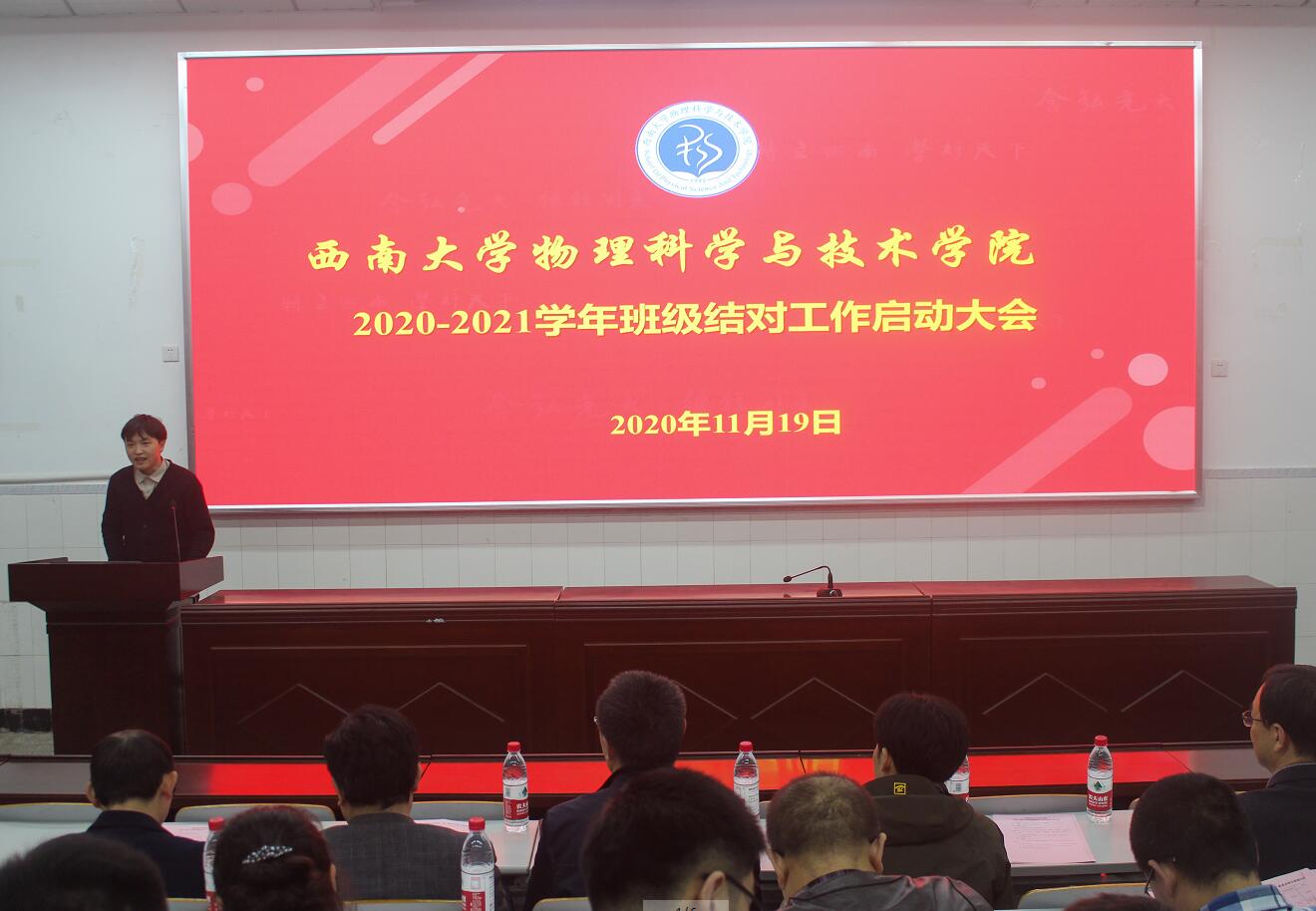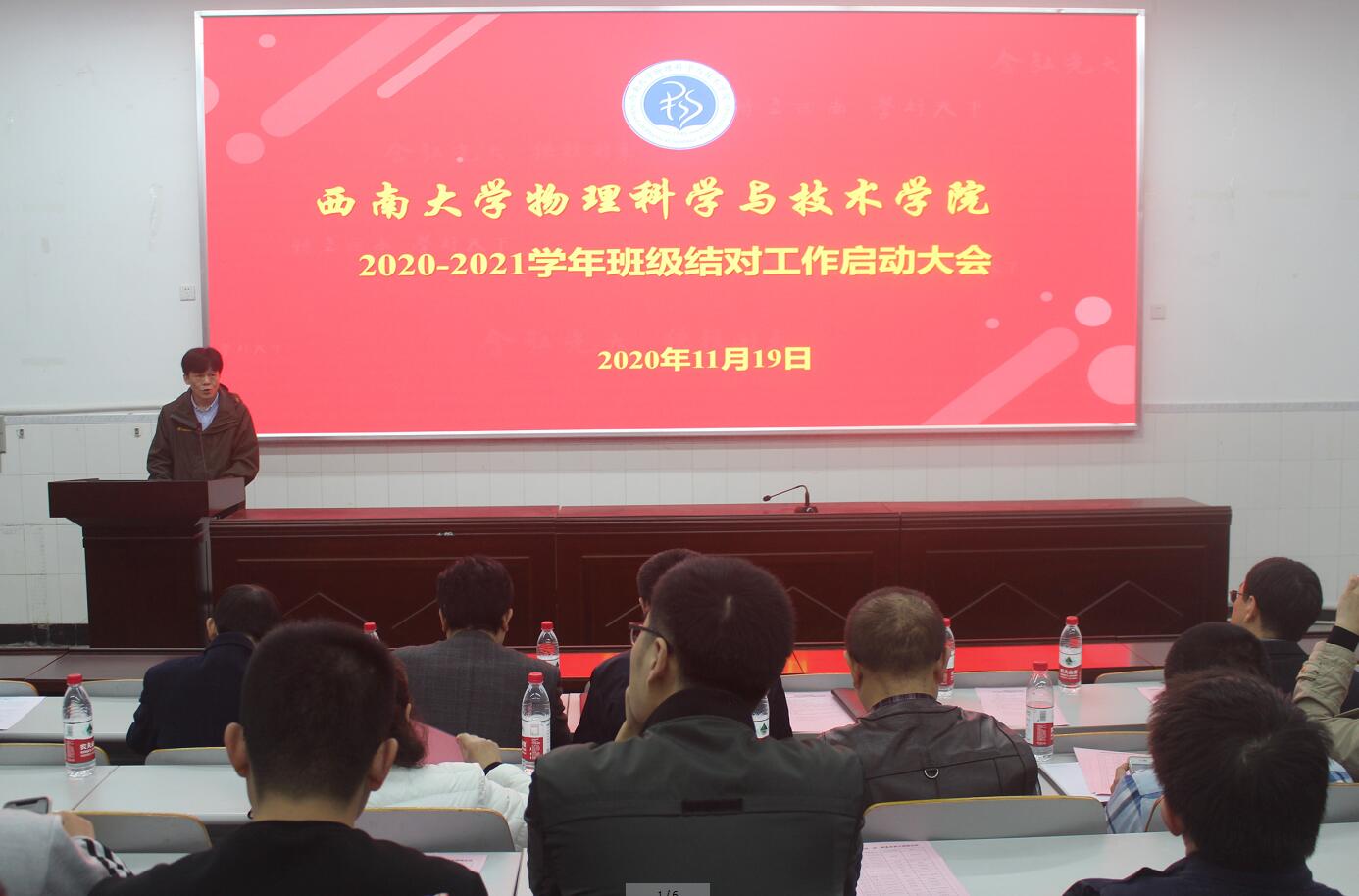 11月19日,哔咔漫画 2020-2021学年班级结对工作启动大会在大阶梯教室召开。哔咔漫画 领导班子成员、两委委员,全体本科生辅导员、班主任,副班主任、驻班党员及各班级代表参与大会。