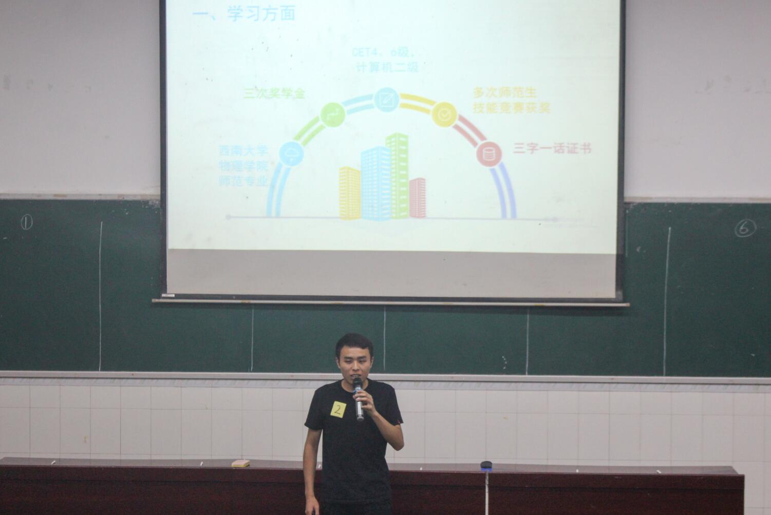 笔试题目选取的是一道物理高考题,选手们基本能在规定时间内顺利完成作答。最精彩的是模拟教学环节,2016级师范1班蹇林函同学直观形象地讲解了《闭合定律欧姆定律》,推理清楚,展现了物理教师应有的严谨规范;2016级师范2班严祎祺同学生动有趣地讲解了《力的合成》,结合高考题分析加深了对知识点的阐释;最后上场的2016级师范4班刁祥同学探究了《法拉第电磁感应定律》,实验现象明显,现场互动得当,赢得阵阵掌声。