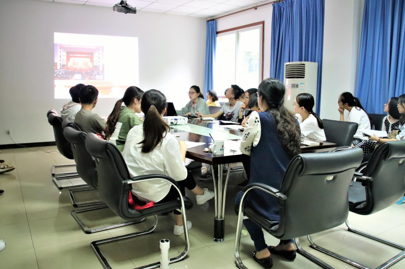 5月9日,哔咔漫画 团委在物理大楼二楼会议室组织召开学习习近平总书记北京大学师生座谈会和纪念马克思诞辰200周年大会重要讲话精神座谈会。院团委书记贺颖、实习辅导员邓兰香、学生会主席团和各部门干部干事代表30余人参会。