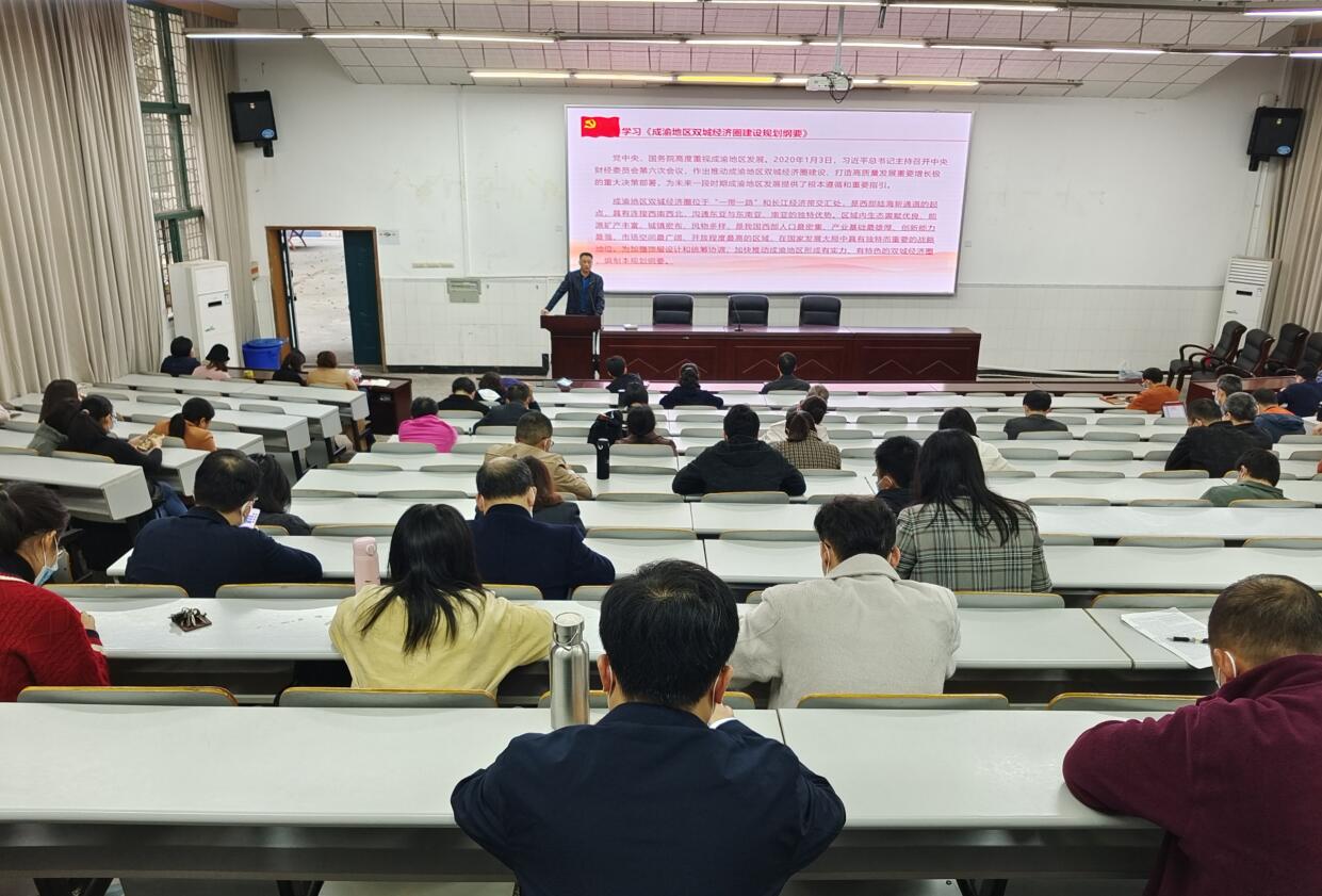 最后,李书记又带领大家学习了《成渝地区双城经济圈建设规划纲要》。他指出,中央政治局会议审议通过的《成渝地区双城经济圈建设规划纲要》,成渝地区双城经济圈建设的“任务书”“施工图”,充分体现了以习近平同志为核心的党中央对川渝两省市的深切关怀和殷切期望,为新时代成渝地区发展提供了根本遵循和重要指引。
