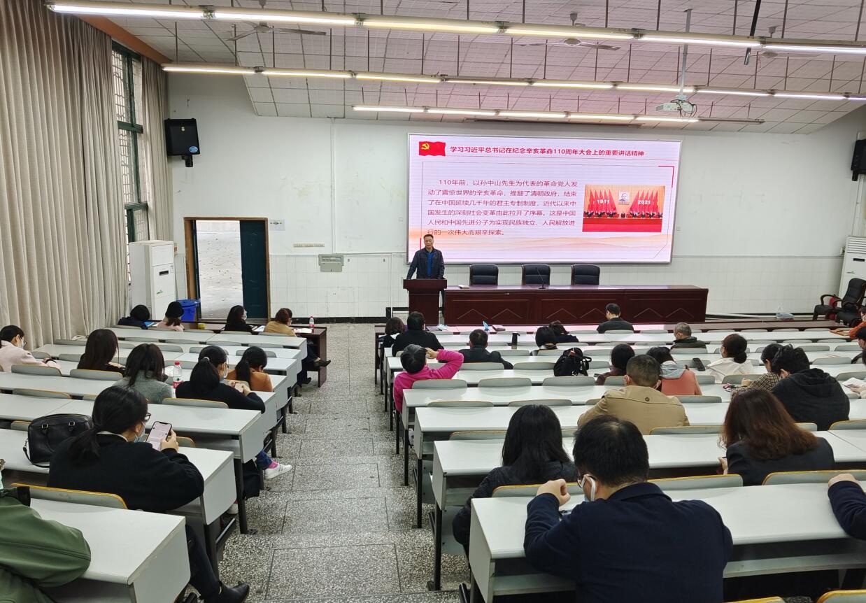 首先,李余廷书记带领大家学习了习近平总书记在纪念辛亥革命110周年大会上的重要讲话精神。他指出,习近平总书记的重要讲话,高度评价辛亥革命的历史功绩和重大意义,回顾总结中国共产党继承孙中山先生革命事业、团结带领人民不懈奋斗的光辉历程,深刻阐述辛亥革命110年来的历史启示,郑重宣示了坚决遏制“台独”分裂活动、捍卫国家主权和领土完整、实现祖国完全统一的坚强决心与坚定意志。他强调,习近平总书记的重要讲话立意高远、思想深邃,鼓舞人心、催人奋进,具有非常重要的历史意义和现实意义。李书记强调,广大教职工要深入学习贯彻讲话精神,增强“四个意识”,坚定“四个自信”,做到“两个维护”,从百余年来中华民族寻求复兴之路的光辉历程中汲取奋发图强、砥砺奋进的强大力量,为推动哔咔漫画 高质量发展汇聚磅礴力量。