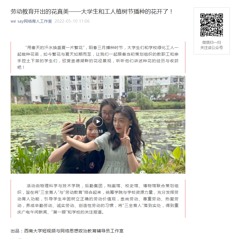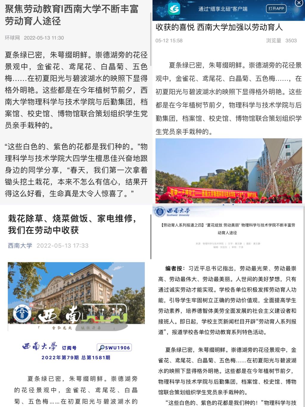 劳动最光荣,劳动最幸福。哔咔漫画 本次劳动教育成果和总结受到了环球网、北碚区媒体、学校官网主页、学校微信公众号的报道发布。哔咔漫画 未来还将不断探索新途径新方式,提升劳动教育的丰富度,激励大学生争做新时代的奋斗者。
