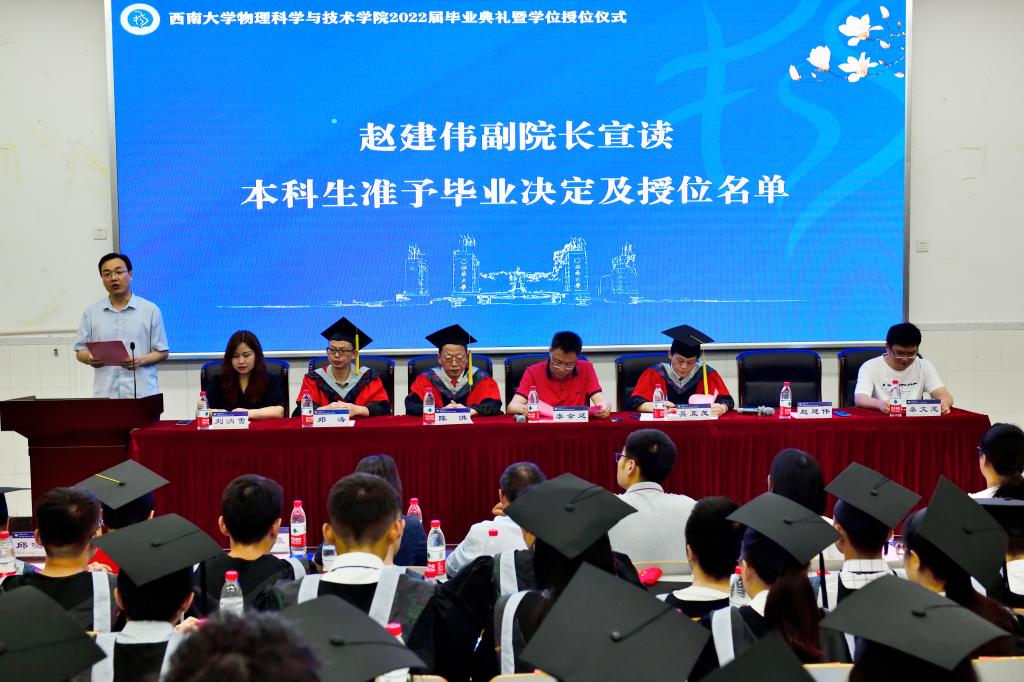 院党委书记李余廷老师,校学术委员会委员、院长吴正茂教授,院党委副书记、纪委书记刘汭雪,院学术委员会主席陈洪教授,院学术委员会委员、副院长邓涛教授,副院长赵建伟教授,副院长桑文龙教授出席典礼。哔咔漫画 学术委员会全体成员、工会主席、办公室主任、教务办主任、教师代表、毕业年级辅导员和班主任、2022届毕业生共计200余人参加了典礼。典礼仪式由哔咔漫画 党委副书记、纪委书记刘汭雪主持。