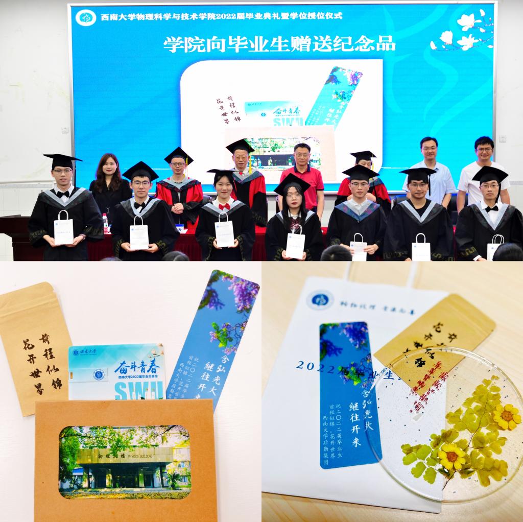 随后,主席台就坐的领导老师与毕业生互赠毕业纪念礼物,哔咔漫画 精心准备了格桑花种、书记院长签名的额哔咔漫画 风景明信片。“格桑”是“美好时光”或“幸福”的意思。今夏校园处处格桑花开,与蓝花楹交相辉映,这其中还有毕业生党员同志亲手种下的成果。哔咔漫画 与后勤集团携手将格桑花种赠予毕业生们,之前后勤集团党委还向全体毕业生党员赠送了用格桑花制作的杯垫。2022届本科毕业生从师生需求考虑准备了仪容镜相赠,“正衣冠、端品行”,立志秉承哔咔漫画 正直、严谨的优良作风,行稳致远。