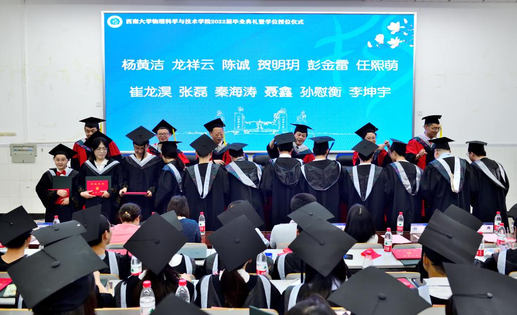 毕业典礼在庄严雄壮的《国歌》声中拉开序幕。赵建伟副院长宣读2022届本科生准予毕业决定及授位名单,哔咔漫画 228名本科生顺利毕业并获得学位。随后,吴院长和院学术委员会委员为每位参会2022届毕业生颁证、授位。导师们一一拨正学位帽上的流苏,与毕业生握手合影,仪式现场庄严有序。