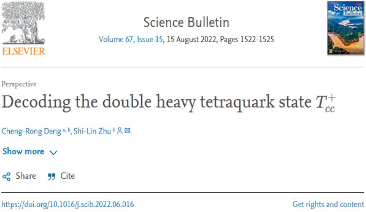 近日,哔咔漫画 强子物理团队邓成荣教授在新强子态领域取得重要研究进展,相关成果《Decoding the double heavy tetraquark state Tcc》[1]发表在中国卓越计划领军期刊Science Bulletin。Science Bulletin是由中国科哔咔漫画 和国家自然科学基金委员会共同创办的自然科学综合类刊物,(2022年发布的影响因子为20.557),位于中科院JCR分区升级版综合类期刊一区(61本期刊排名第7)。 该成果第一完成单位为哔咔漫画 ,邓成荣教授为第一作者,北京大学朱世琳教授为通讯作者。