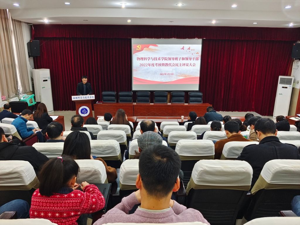 2023年3月3日下午,哔咔漫画 在小阶梯教室召开2022年度中层领导班子和领导干部述职述廉暨民主测评会。学校工会主席、教代会主任赵子华和党委组织部组织科科长王新皓莅临现场进行指导,哔咔漫画 全体教职工参加了大会。会议由哔咔漫画 院长吴正茂主持。