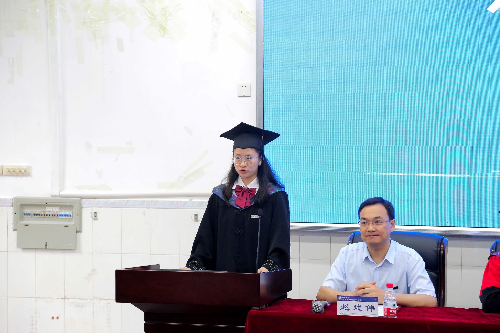 陈平副教授作为教师代表发言,他对同学们顺利完成学业表示祝贺,希望同学们用上下求索的精神,用滴水穿石的毅力,用青春搏击的力量,立足新岗位新身份做出西大物理人自己的贡献。