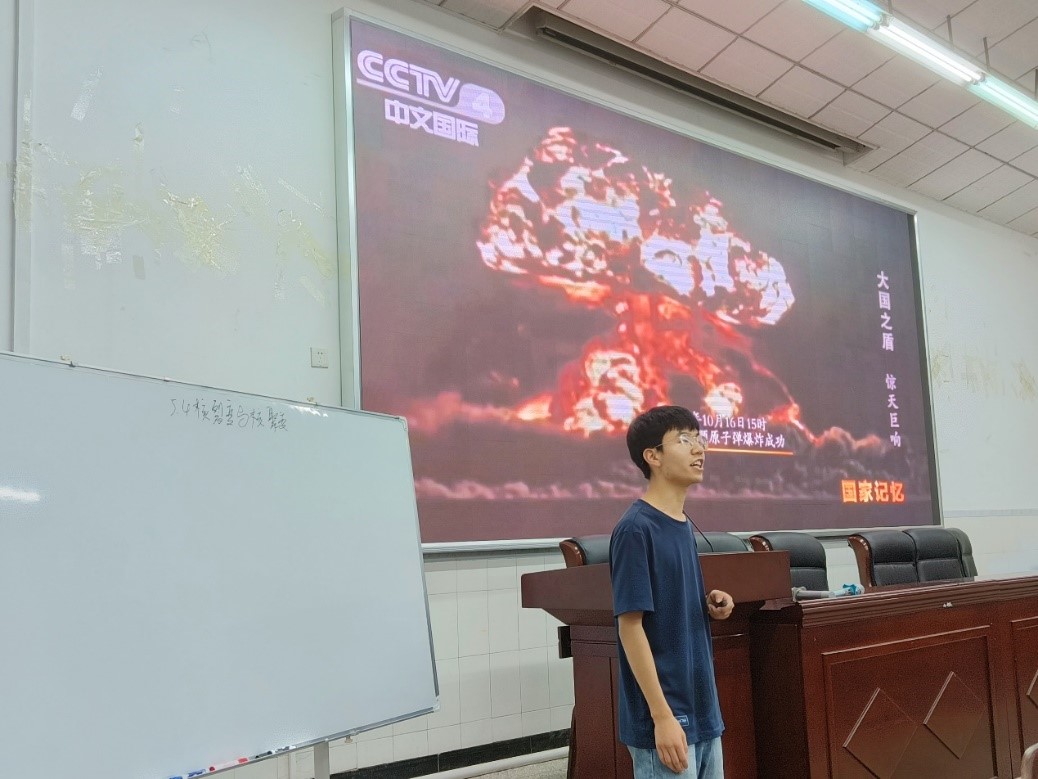 来自师范一班,在哔咔漫画 附属中学实习的吴天富同学用“大国之盾——原子弹”作引入,为大家讲解核裂变的同时更激发着同学们的爱国情怀。