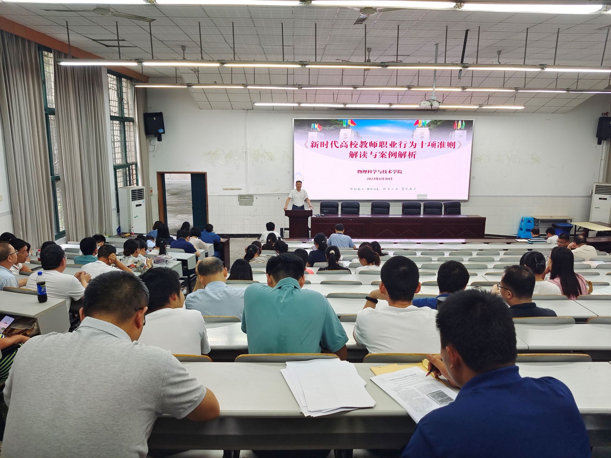 随后,李余廷书记为全体教职工详细解读了《新时代高校教师职业行为十项准则》和《关于高校教师师德失范行为处理的指导意见》,并结合教育部通报的违反高校教师职业行为十项准则典型案例进行警示教育。李书记在领学时指出,《准则》和《意见》明确了新时代教师职业规范,针对主要问题、突出问题划定底线,对高校进一步加强师德师风建设,落实立德树人根本任务,造就高素质教师队伍提出了明确要求,也为广大高校教师严格自我约束、规范职业行为、加强自我修养提供了基本遵循。李书记强调,全院教职工要深入学习习近平总书记关于教育的重要论述和指示批示精神,坚决落实师德师风第一标准,落实新时代教师职业行为十项准则,不忘为党育人、为国育才初心使命,严格自我约束、规范职业行为、加强自我修养,争当“四有好老师”,积极营造风清气正的育人环境。