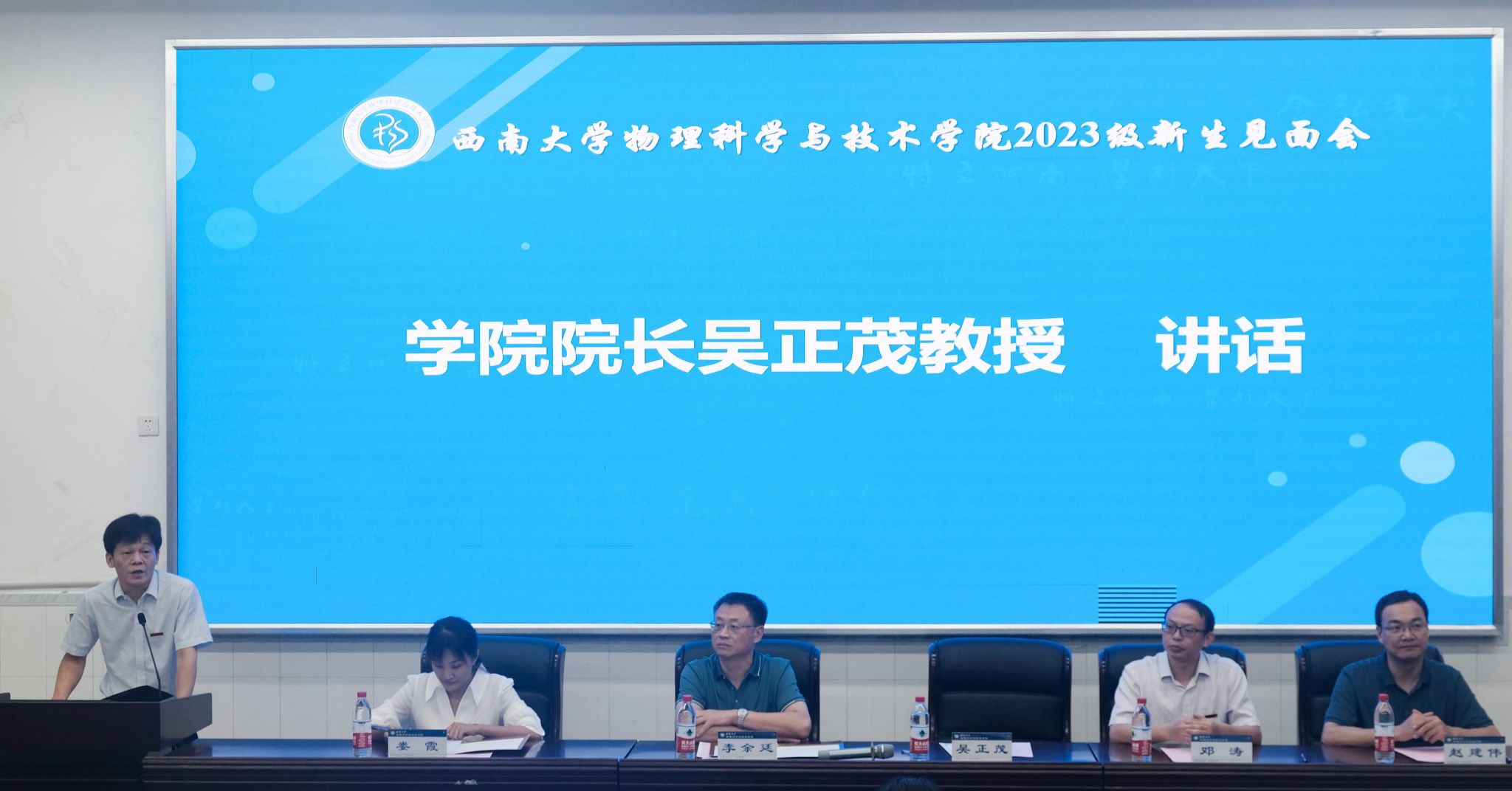 院长吴正茂教授亲切致辞,他代表物院全体师生对2023级的新同学表示了热烈的欢迎和衷心的祝贺。吴院长从物院的办学历史、师资力量、教学条件和科研成果等方面介绍了哔咔漫画 的基本情况。吴院长还对全体新同学提出了殷切希望,他希望大家能树立目标,坚持乐学善学、精益求精的精神荡起奋斗之桨,收获“知行合一”“敏锐观察”“勇于拼搏”的力量,在物理哔咔漫画 寻梦、追梦、圆梦。