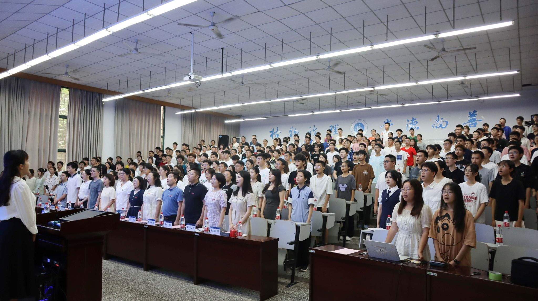 校歌,昂扬向上的旋律中谱写着同学们对大学生活的期许,新生见面会在这朗朗歌声中圆满落下帷幕。