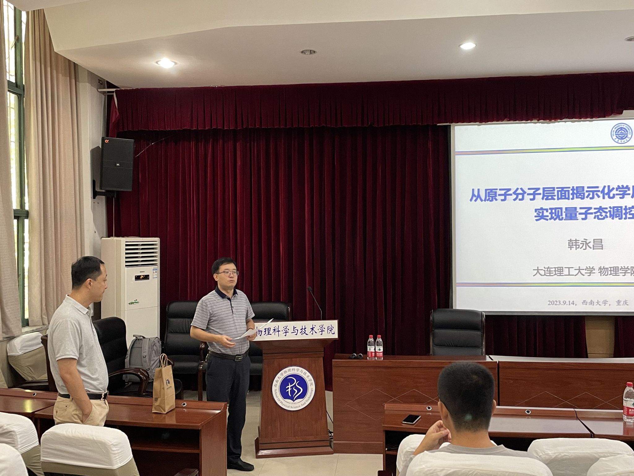 9月14日上午,大连理工大学韩永昌教授应邀为哔咔漫画 师生作题为“从原子分子层面揭示化学反应机理、实现量子态调控”的学术报告。本次报告会由袁宏宽教授主持,哔咔漫画 相关学科方向的教师及研究生参加了报告会。