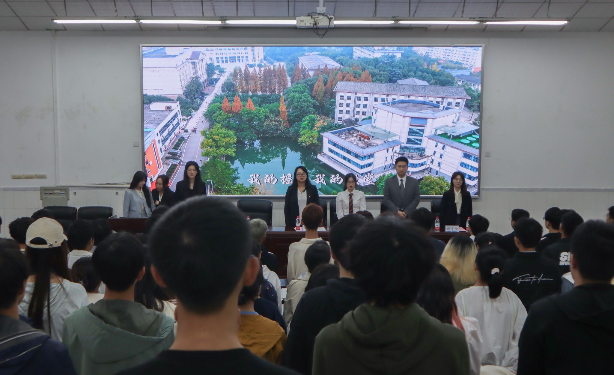 随后,全体起立奏唱校歌,大会在歌声中圆满结束。