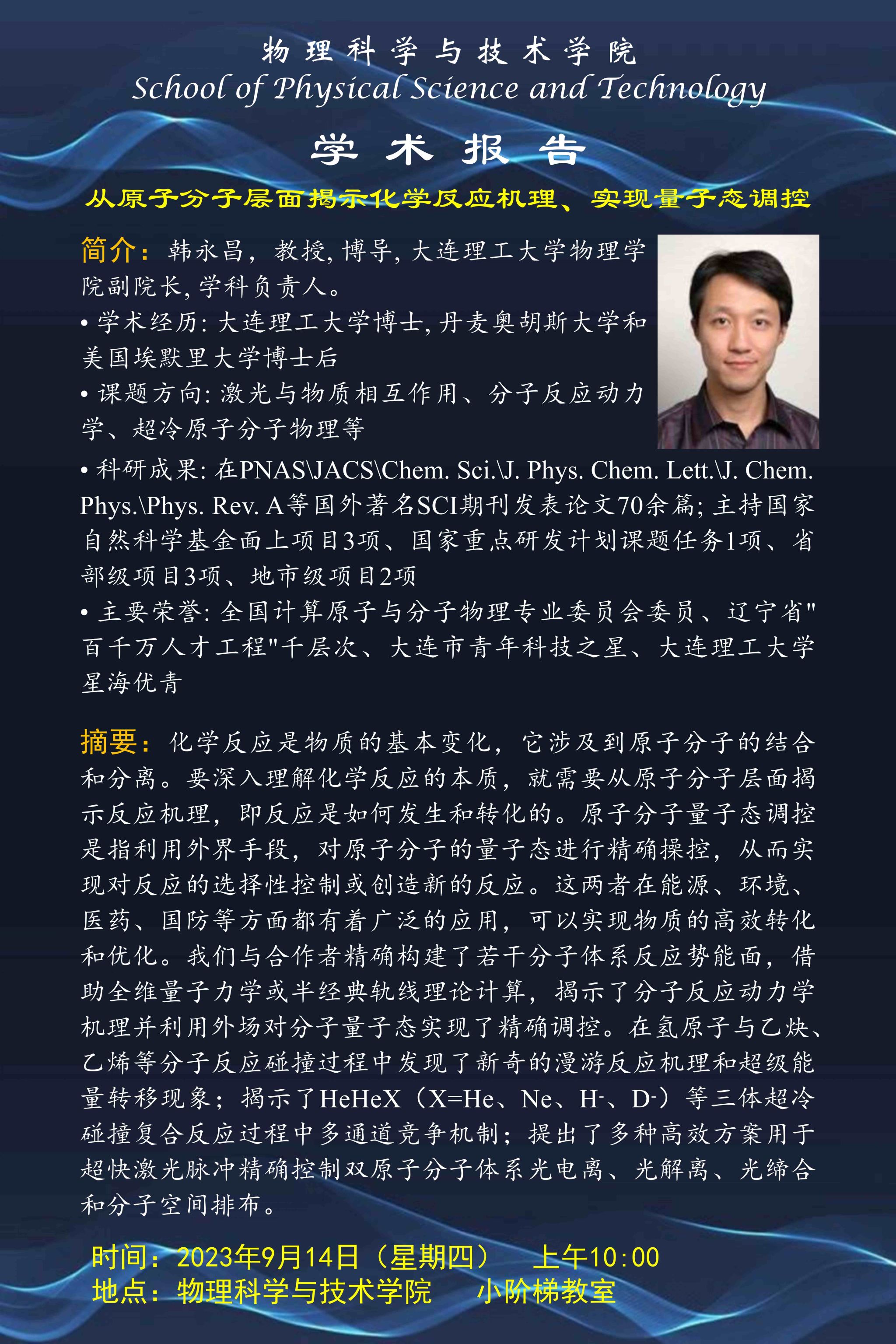 【学术报告】从原子分子层面揭示化学反应机理、实现量子态调控