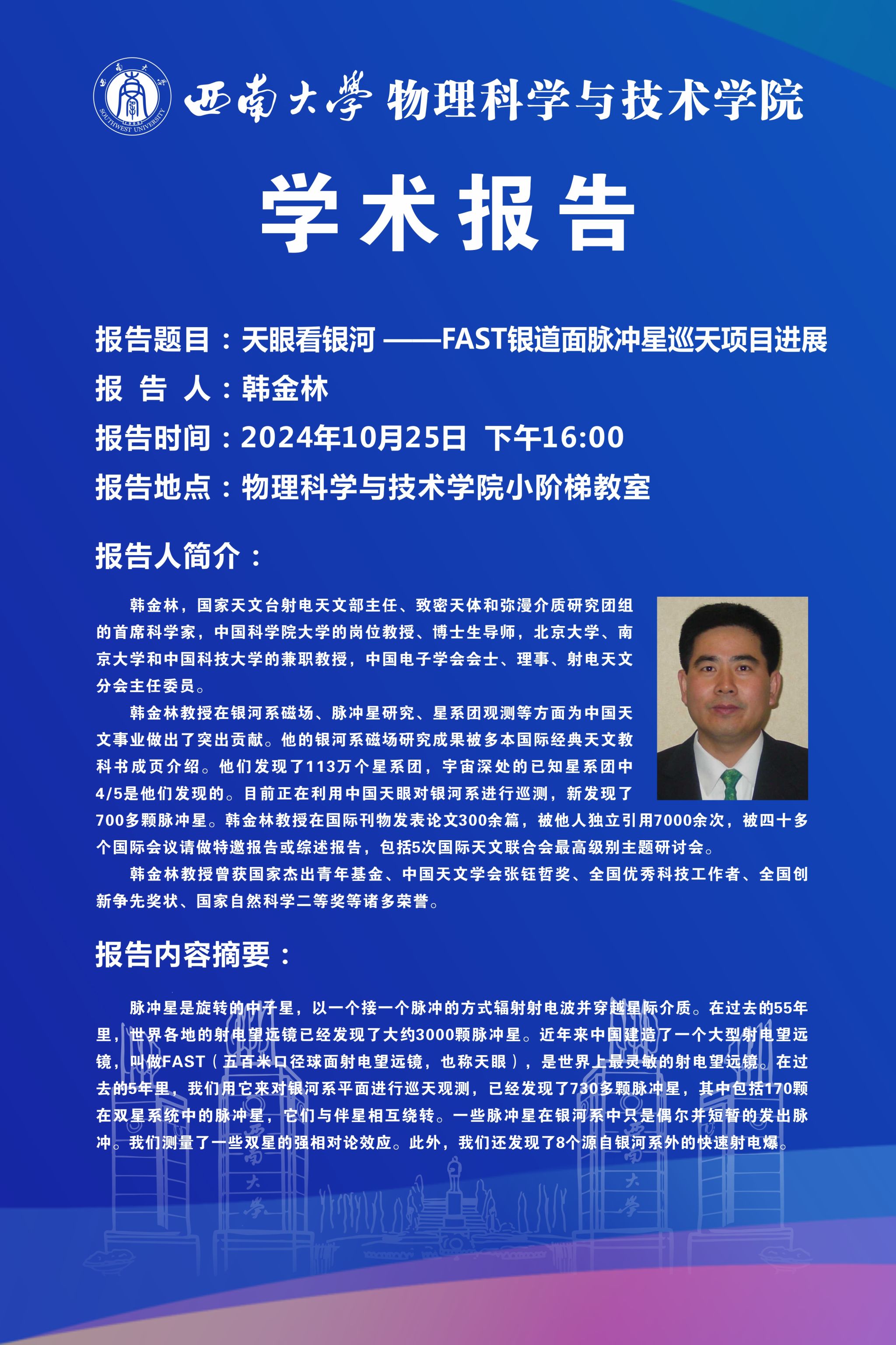 【学术报告】 天眼看银河—FAST银道面脉冲星巡天项目进展