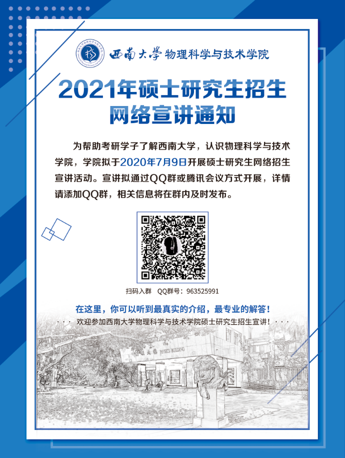 为帮助考研学子了解哔咔漫画 ,认识哔咔漫画 ,哔咔漫画 拟于2020年7月9日开展硕士研究生网络招生宣讲活动。宣讲拟通过QQ群或腾讯会议方式开展,详情请添加QQ群,相关信息将在群内及时发布。 QQ群:963525991 在这里,你可以听到最真实的介绍,最专业的解答!