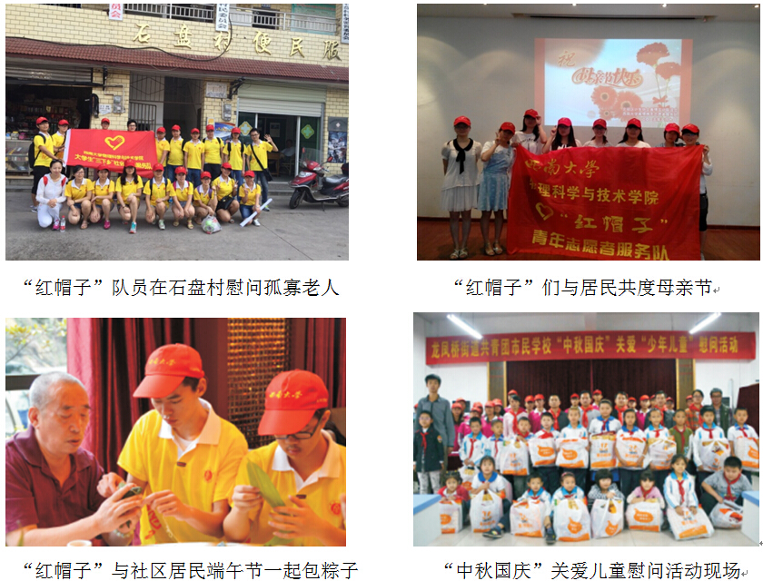 为扩大志愿服务活动的参与面,在“红帽子”的基础上,哔咔漫画 结合专业优势,于2004年4月组建了“红粉笔”义务支教队,以“团结友爱、无私进步、奉献爱心、传播真情”为宗旨,哔咔漫画 又于2007年5月成立了“红丝带”真情携手服务队。此后,哔咔漫画 的志愿服务工作迎来了新阶段、新局面,开始着手打造学生志愿服务活动“系列红”品牌工作——“红帽子”青年志愿者服务队利用物理学专业知识开展技术服务,“红粉笔”义务支教队依靠师范生关爱留守儿童开展教育服务,“红丝带”真情携手服务队则在献血、捐献骨髓等方面进行实践探索。