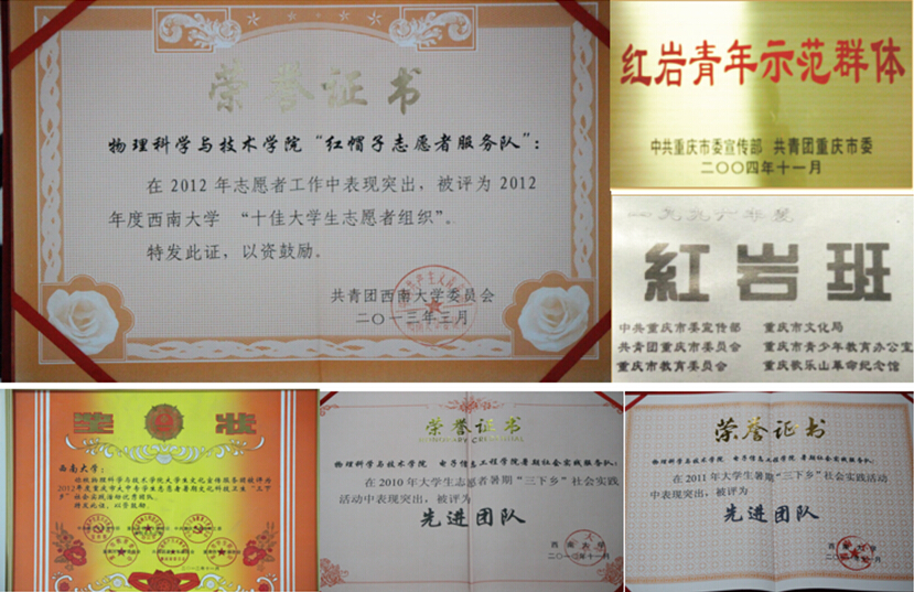 曾荣获2004年“重庆市红岩青年示范群体”、2012年哔咔漫画 “十佳大学生志愿者组织”、2014年哔咔漫画 “雷锋式团组织”、2017年5月哔咔漫画 首届志愿服务项目大赛“一等奖”、2017年9月“移动4G+”第36届大学生“青年之声 校园之春”文化艺术体育活动高校志愿服务项目大赛“银奖”等荣誉称号。2018年“红帽子”特色活动之一家电维修在北碚区志愿服务先进典型评选活动中被评为“最佳志愿服务项目”。近年来,受到《中国青年报》、《中国教育报》、《四川日报》、《重庆日报》、重庆电视台等多家媒体的关注和报道。