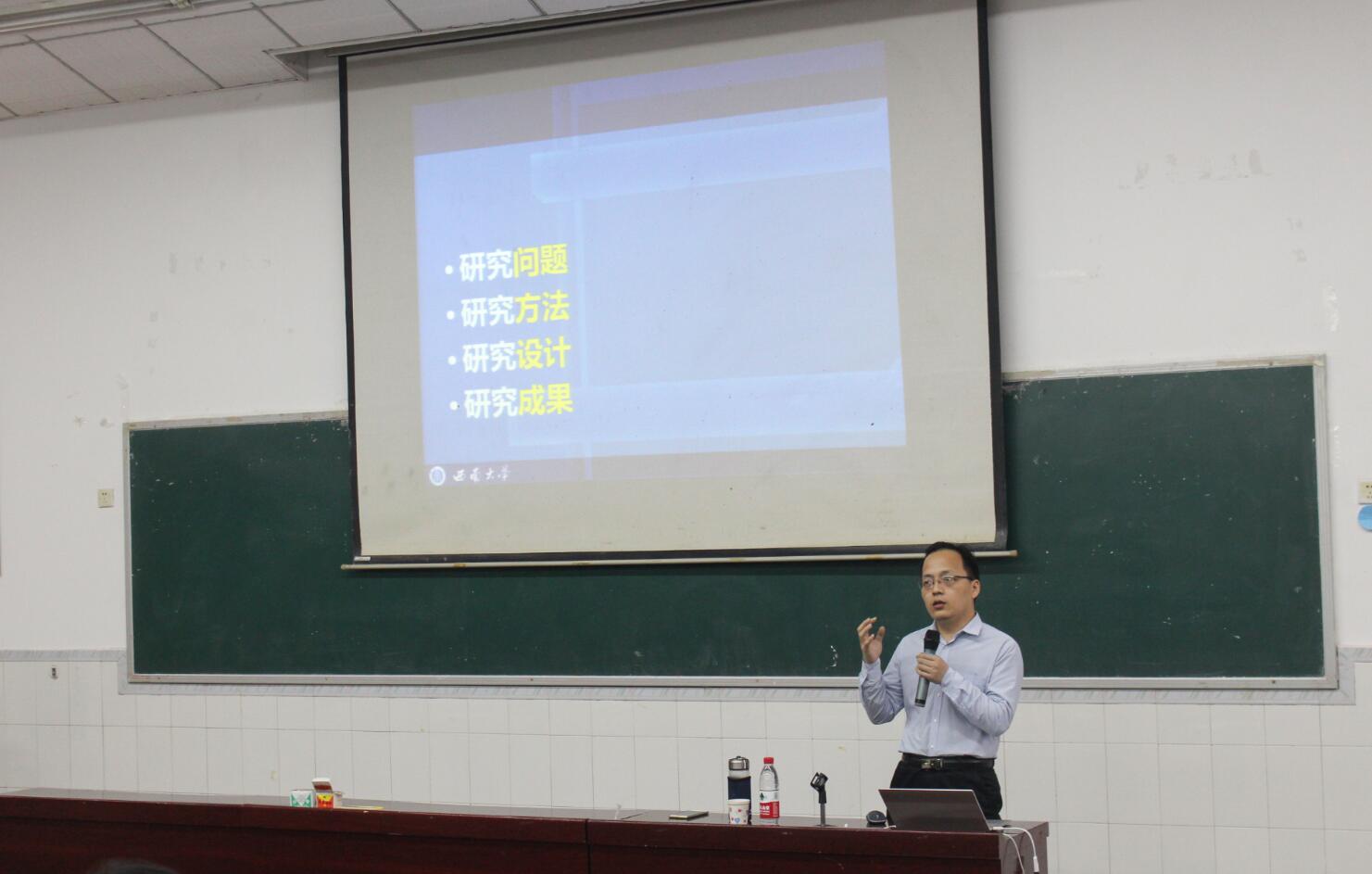 4月11日下午4时,李富强副教授作为第二期嘉宾,在物理大楼大阶梯教室带来了“从问题到成果:物理教育类论文写作的几个问题”的讲座,2016级、2017级近两百名师范生到会学习。李老师从研究问题、研究方法、研究设计和研究成果四个方面,分析了问题领域、问题凝练、问题大小三部分的不同注重点,介绍了实验法、比较研究法、调查访谈法、文献研究法、田野工作法等多种研究方法。在研究设计方面他提出“要注重考虑样本选择、比较框架、文本分析、结论修正”,在研究成果方面他强调“保证论文的客观性,有一分证据,说一分话”。最后,李老师借用胡适先生的观点“大胆假设,小心求证”来提醒同学们论文写作要脚踏实地、实事求是。