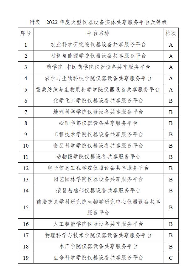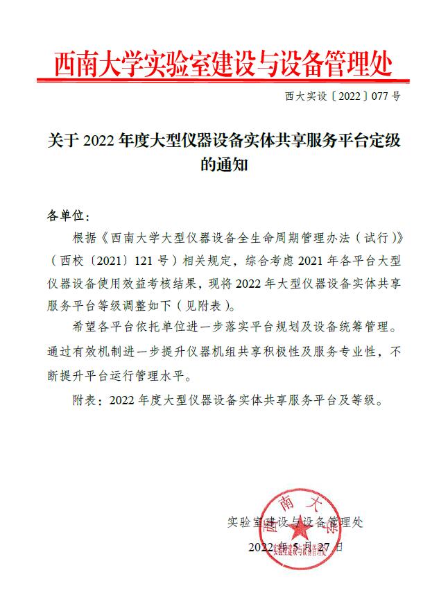 转发学校关于2022年度大型仪器设备实体共享服务平台定级的通知
