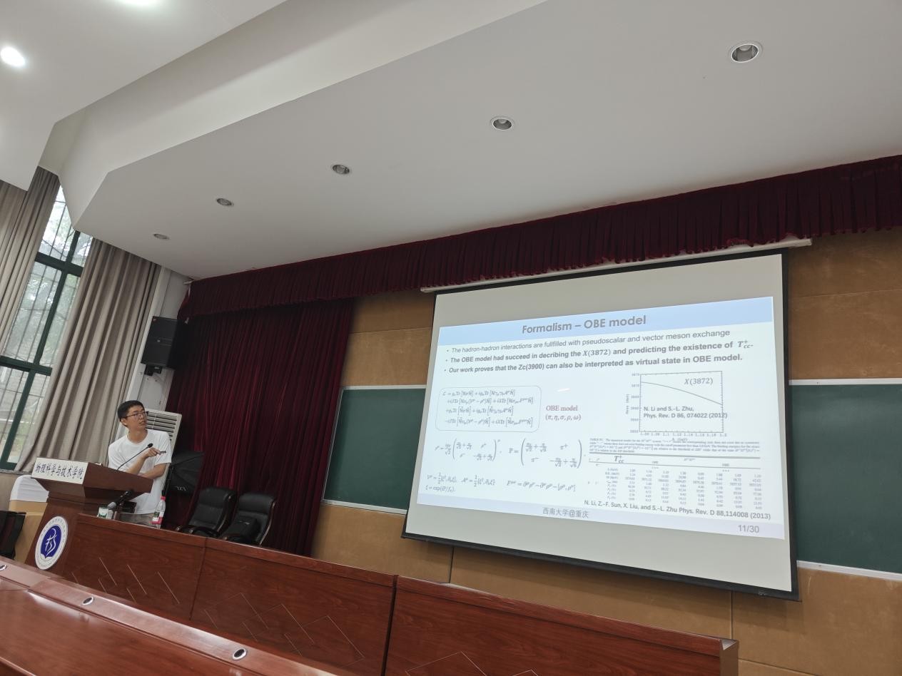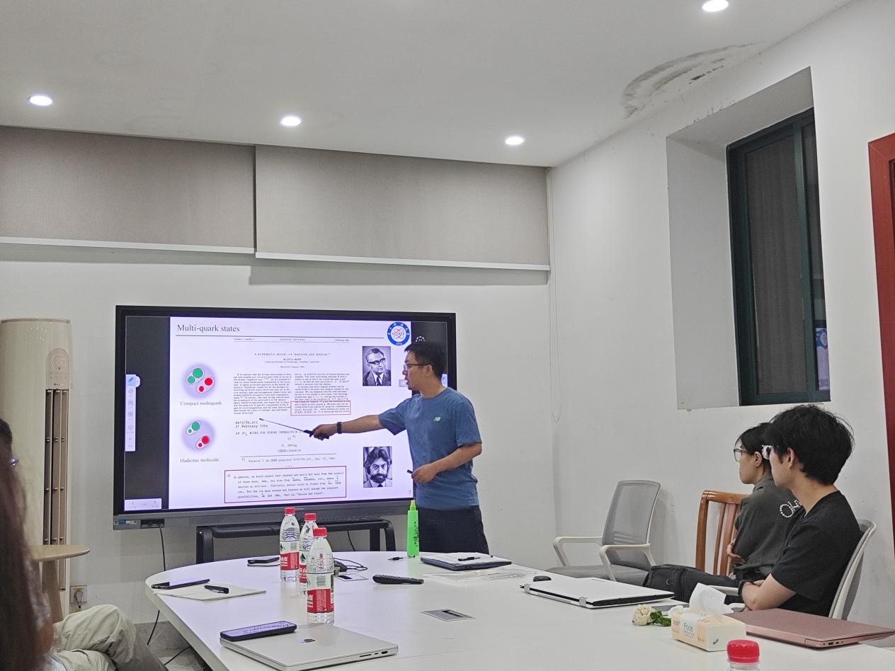 进行学术交流,为大家带来名为《Probing DK interaction in B decays and heavy-ion collisions》、《 Implication of the existence of a